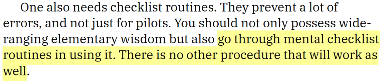 Any process where error is too costly uses checklists (nuclear safety, aviation, investing, etc.). It’s a method that’s too simple and too effective at limiting potentially very costly mistakes not to be used.