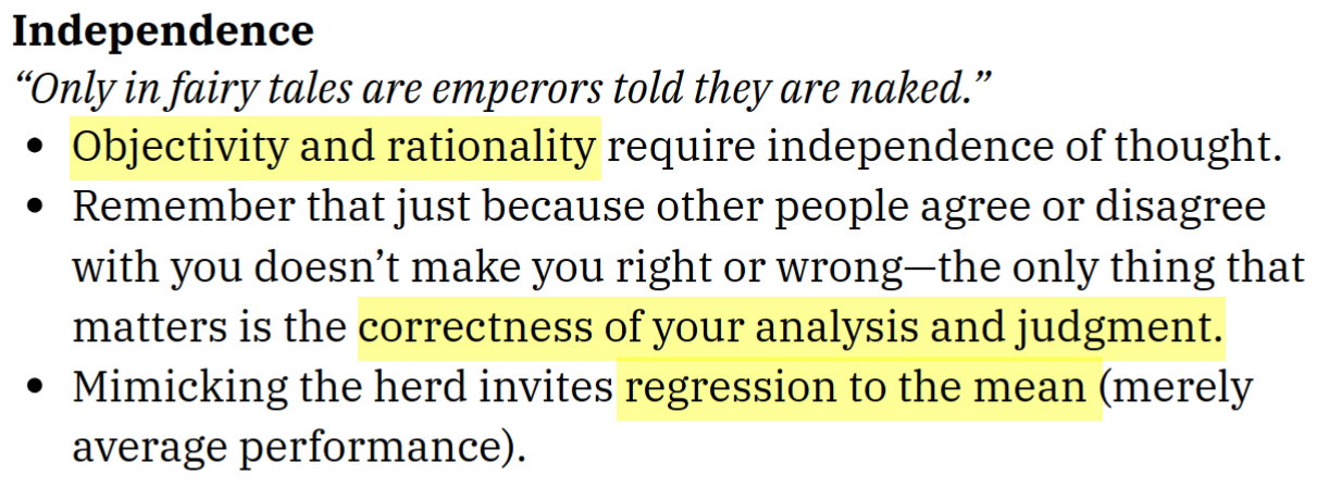 You are (almost) the only person naturally incentivized to care about your success. Everyone who gives you an opinion or a business idea—even experts—has incentives that are not necessarily aligned with yours. Independent thinking is the only way to align your decisions and your incentives with your own success.