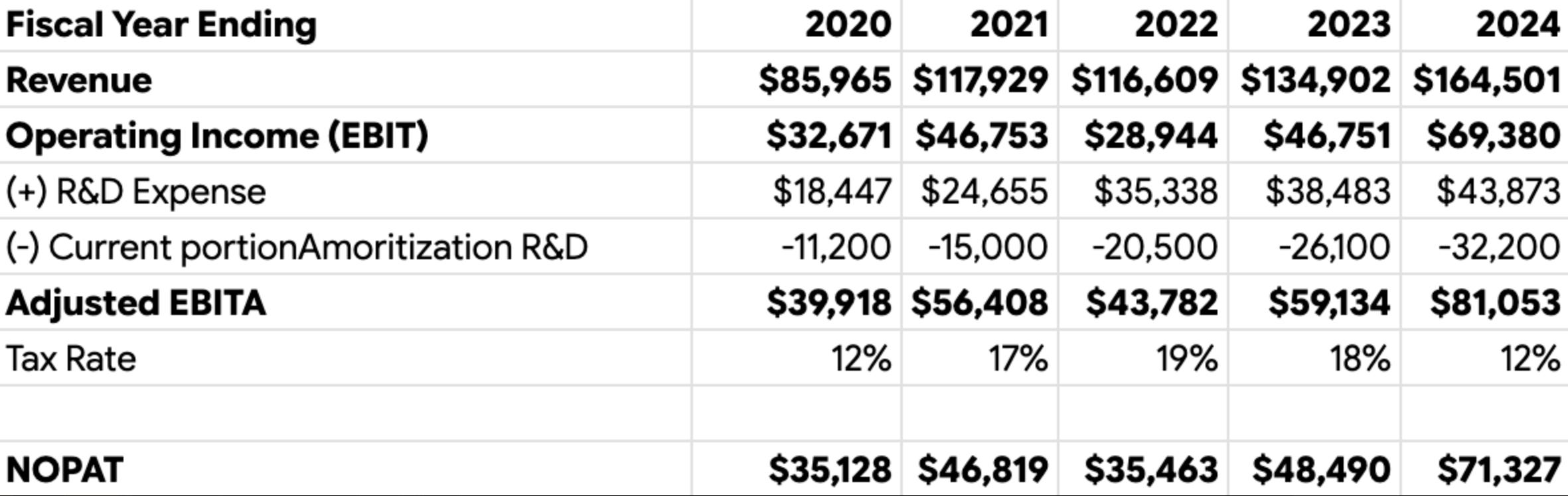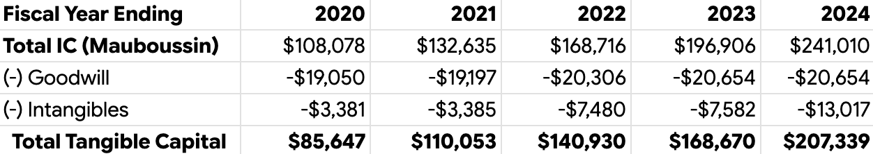 1. Over how long did you amortize the capitalized intangibles for the NOPAT calculation? Im curious as I know there's no "correct" way of doing this although Mauboussin uses a study-backed method.