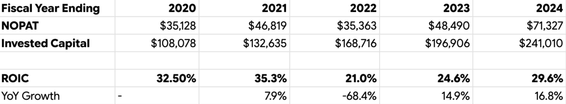 2. When you say "the rapid expansion of the asset base has been matched by NOPAT driven by AI-enchanced monetization". I think the analysis isn't really giving you the true picture of the returns of the data centers, and more generally the new AI investments. To get an accurate idea of the ROIIC, you would need to know exactly to what extent the new CapEx has contributed to the new NOPAT - which is difficult to obtain the data for. I think it's difficult to come to the conclusion that the new investments have paid off to the extent you say. I think it's more likely that the NOPAT can be attributed to the other reasons you mention i.e. growth in their other activities + cost cutting... I believe we still have quite a lot of time in front of us before seeing any material impact of the AI investments currently being made, don't you think?